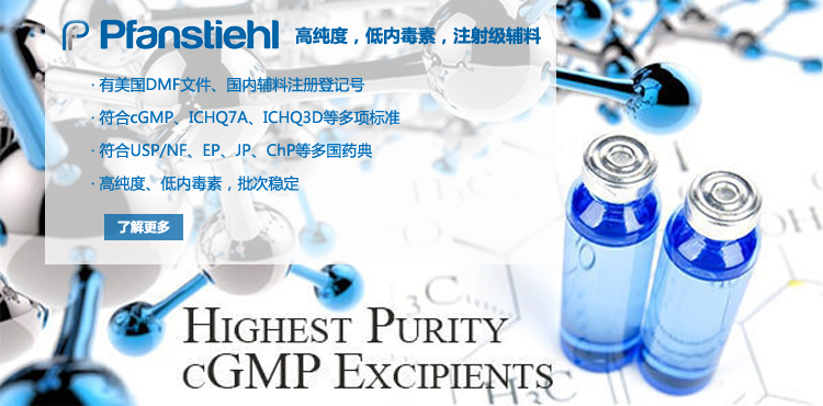 “熱烈祝賀Pfanstiehl的注射級甘氨酸Glycine(G-140)喜獲CDE登記號F20250000403, 這是Pfanstiehl產品獲得的第18個CDE登記號!”甘氨酸在醫藥輔料制劑中應用廣泛,, 可作為緩沖劑,增溶劑,穩定劑等,具有諸多優勢。Pfanstiehl秉承一貫高品質理念,為滿足全球生物制藥行業對于高品質甘氨酸的需求,隆重推出的注射級甘氨酸Glycine (G-140), 具有超高純度,超低內毒素,超低金屬殘留的特點,單獨檢測29種金屬離子,并且新增DNA,RNA,DNA酶,RNA酶和脂肪酶,亞硝酸鹽等多項質量指標的檢測,符合多國藥典規定(USP, EP, BP, JPE, ChP),可用于生物治療性藥物和疫苗的生產。產品信息:· 產品名稱:Glycine, High Purity, Low Endotoxin, Low Metals, USP, EP, BP, JPE, ChP (G-140)· 中文名稱:甘氨酸· 分子式:C2H5NO2· 分子量:75.07 g / mol· CAS號:56-40-6· 產品貨號:G-140產品特點: · 超高純度,超低內毒素,超低微生物含量,超低金屬雜質殘留· 質量指標新增DNA,RNA,DNA酶,RNA酶,脂肪酶和亞硝酸鹽檢測· 符合多國藥典:USP, EP, BP, JPE, ChP· 符合ICH Q3D標準· 符合GMP標準· 已獲DMF和CDE登記號 產品應用:· 緩沖劑· 穩定劑· 增溶劑如果您對Pfanstiehl注射級別Glycine G-140感興趣,歡迎聯系Pfanstiehl 中國區代理商北京西美杰科技有限公司獲得如下詳細的產品概況說明文件和測試樣品。Pfanstiehl Inc.最新產品系列如下,歡迎聯系北京西美杰科技有限公司獲取100g裝免費樣品。北京西美杰科技有限公司為Pfanstiehl中國代理,為客戶提供完善的技術支持與售后服務。歡迎撥打西美杰客服電話400-050-4006或者登陸網站www_xmjsci_com.queban.net了解更多信息。 更多>